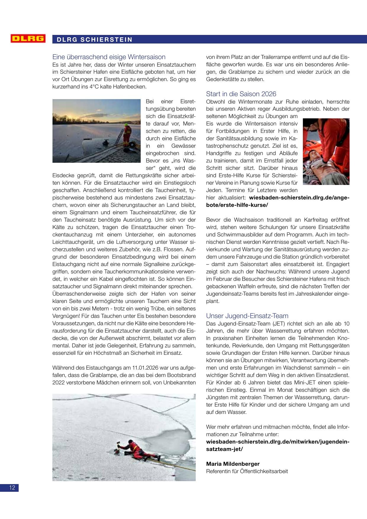 DLRG Schierstein Eine überraschend eisige Wintersaison Es ist Jahre her, dass der Winter unseren Einsatztauchern im Schiersteiner Hafen eine Eisfläche geboten hat, um hier vor Ort Übungen zur Eisrettung zu ermöglichen. So ging es kurzerhand ins 4°C kalte Hafenbecken. Bei einer Eisrettungsübung bereiten sich die Einsatzkräfte darauf vor, Menschen zu retten, die durch eine Eisfläche […]
