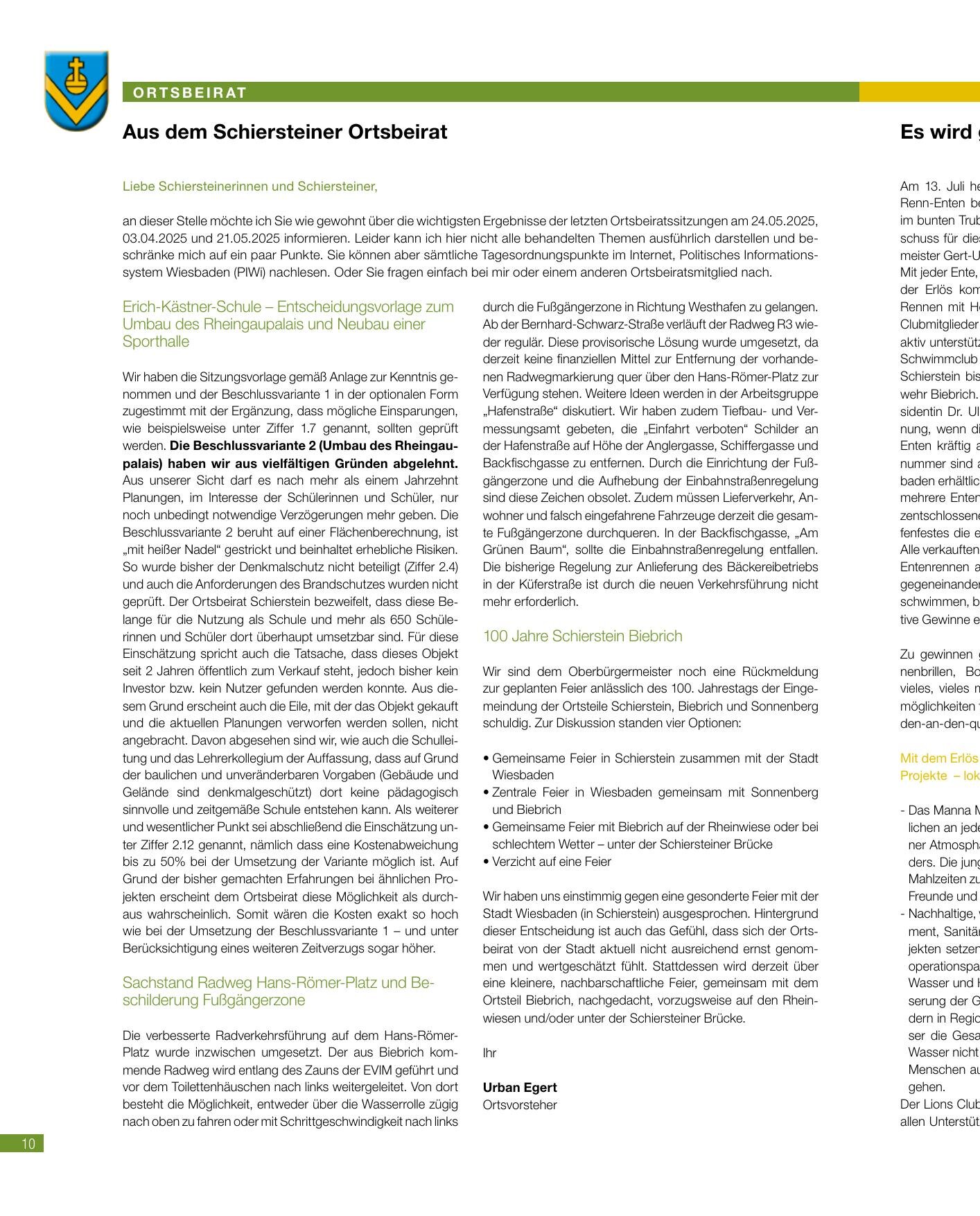 Ortsbeirat Schierstein — Sommer 2025