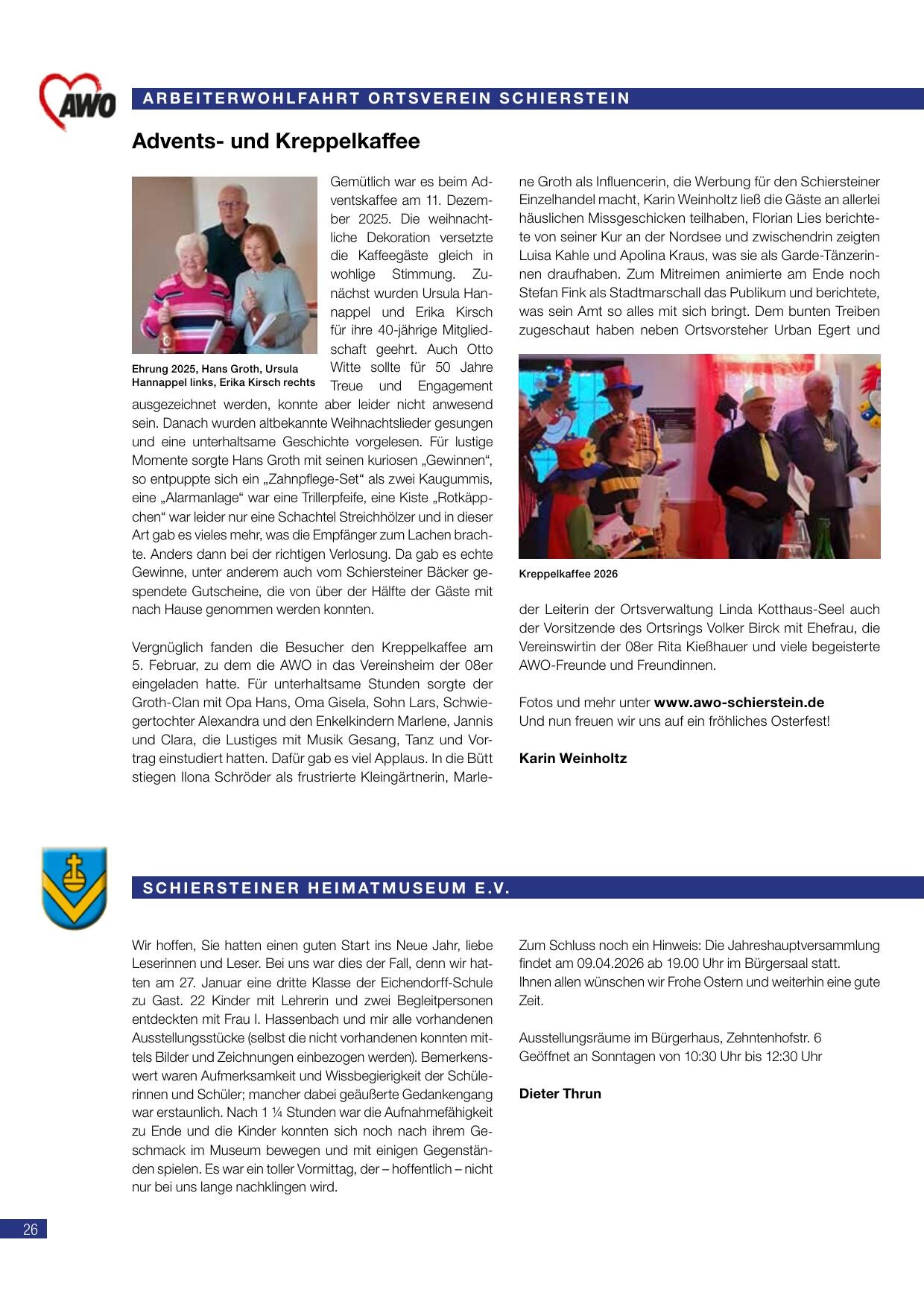 Berichte und Neuigkeiten aus den Schiersteiner Vereinen und Organisationen.