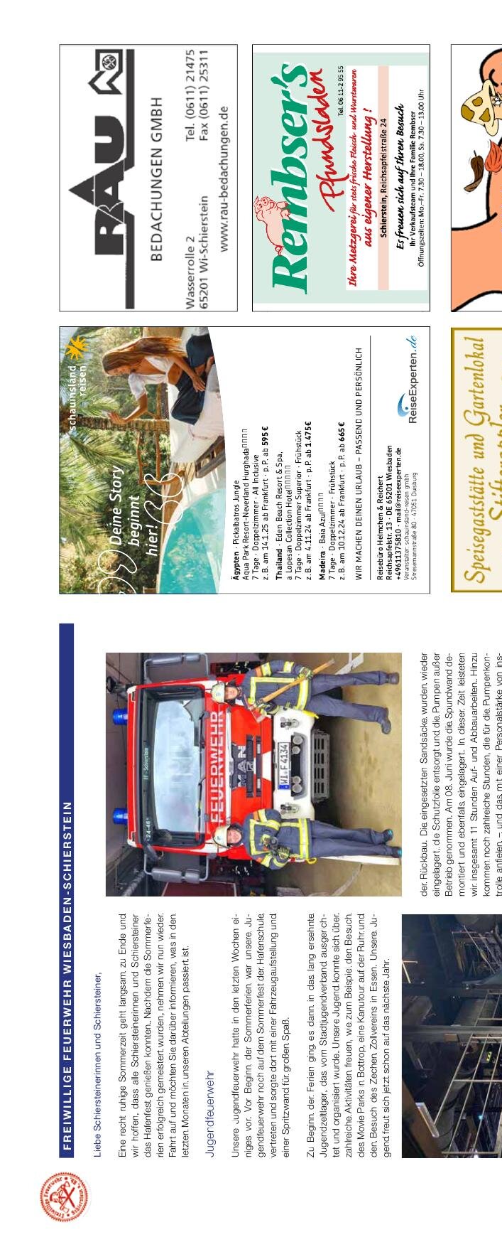 FREIWILLIGE FEUERWEHR WIESBADEN-SCHIERSTEIN Liebe Schiersteinerinnen und Schiersteiner,in dieser Ausgabe wollen wir uns bei Ihnen bedanken. Danke, dass Sie trotz Wetterlage und Veränderungen bei unserem Sommerfest waren. Drei Tage Musik, gutes Essen und Aktivitäten für die Kinder. Drei Tage voller Spaß, guter Laune, aber auch Anstrengung für unsere Helfer. Die Kinder konnten sich an der Spritzwand, […]