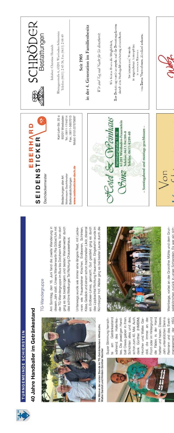TURNGEMEINDE SCHIERSTEIN Erfolge, Wandern, Feste Tennis Sommerfest     Sieger Triplette Meisterschaft Die ersten Erfolge konnten bei der neu gegründeten „HSG 1848″, der Handballspielgemeinschaft zwischen den beiden 175-jährigen Vereinen, des TuS Dotzheim 1848 e.V. und der TG-Schierstein 1848 J.P. gefeiert werden. Dieser Zusammenschluss soll einerseits den Breitensport fördern, aber auch den Spielern die Möglichkeit eröffnen, in […]