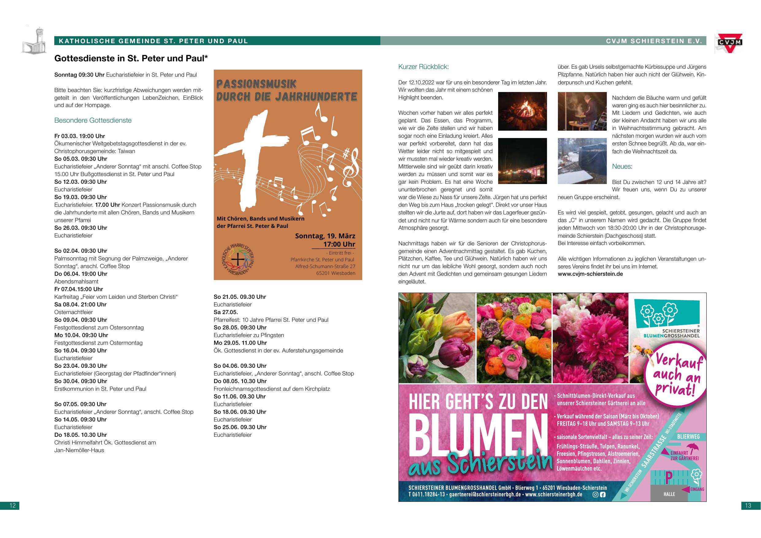 - Jeden Mittwoch – 18:30–20:00 Uhr – Neue Jugendgruppe für 12- bis 14-Jährige (spielen, toben, singen, lachen) – (Christophorusgemeinde Schierstein (Dachgeschoss))