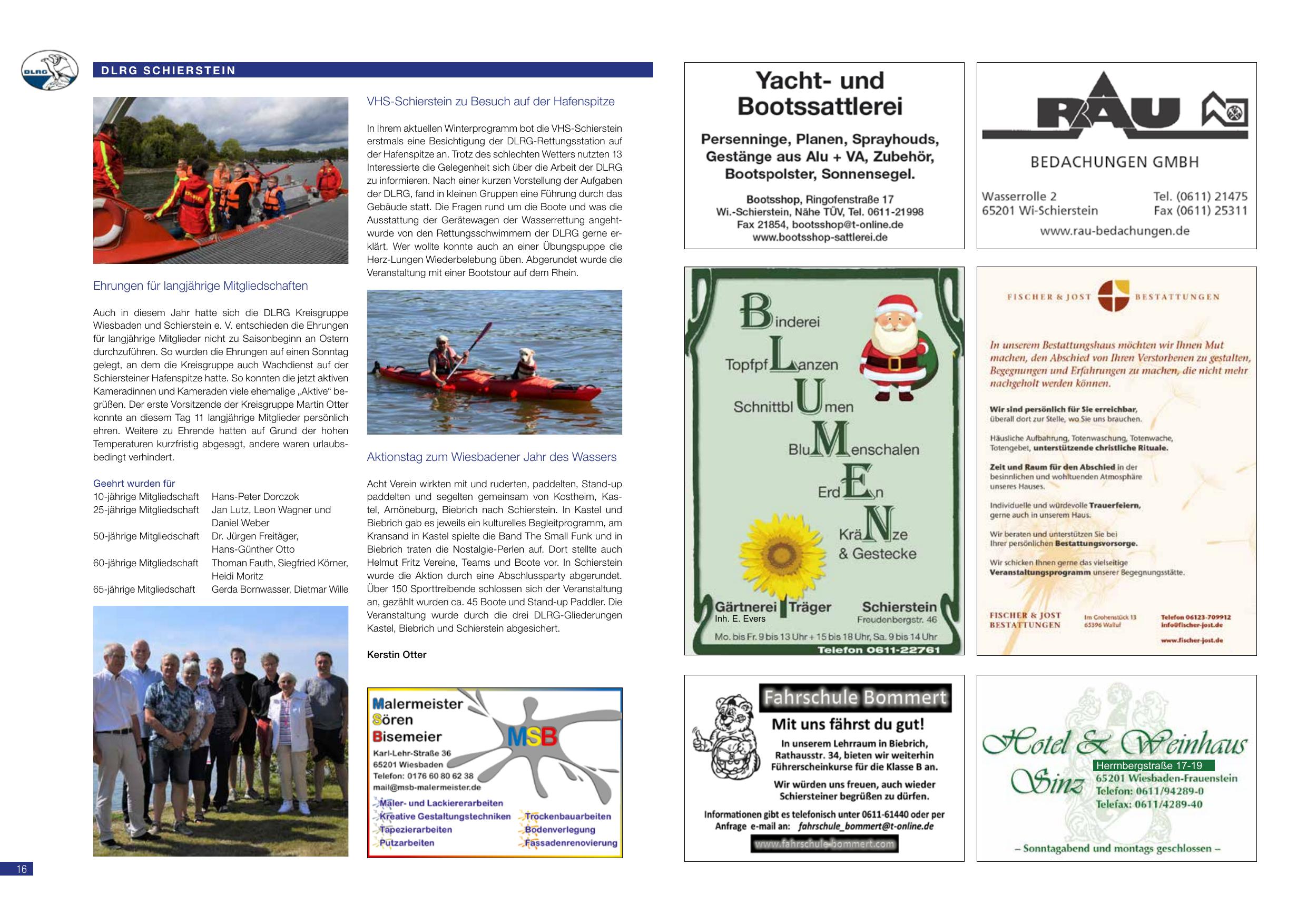 - Winterprogramm (nicht näher spezifiziert) – VHS-Schierstein Besichtigung der DLRG-Rettungsstation auf der Hafenspitze, inkl. Führung durch das Gebäude und Bootstour auf dem Rhein – (DLRG-Rettungsstation auf der Hafenspitze, Schierstein / Rhein)