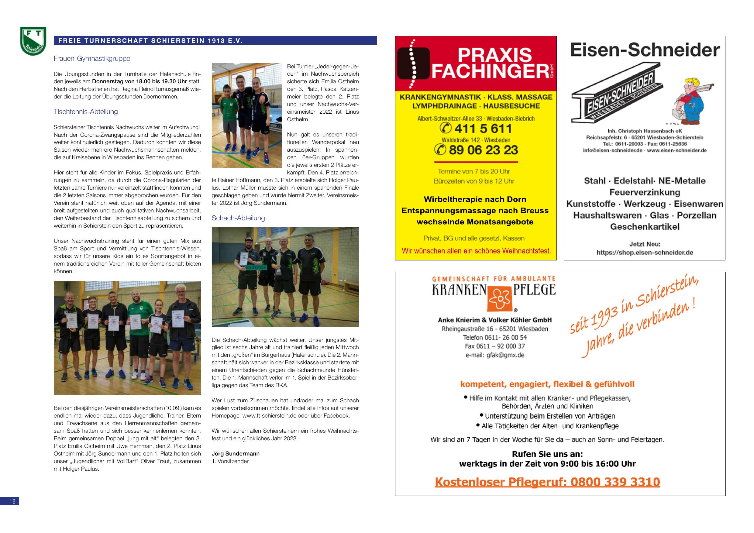 Wir wünschen allen Schiersteinern ein frohes Weihnachtsfest und ein glückliches Jahr 2023.