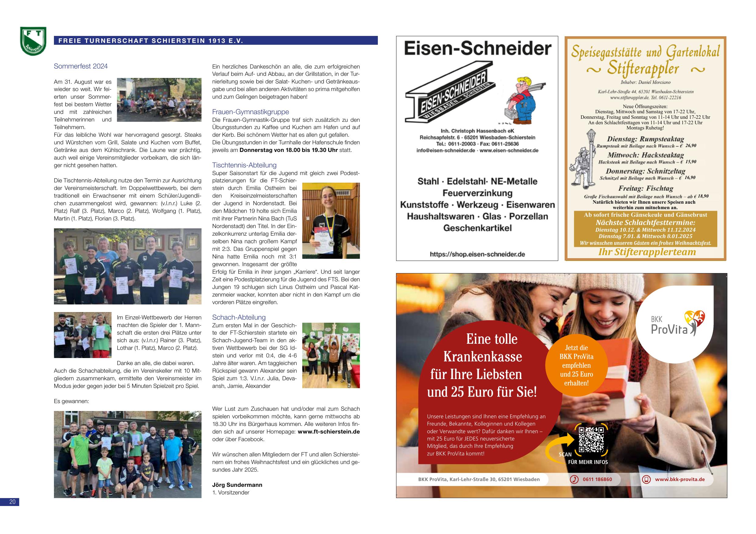 Wir wünschen allen Mitgliedern der FT und allen Schiersteinern ein frohes Weihnachtsfest und ein glückliches und gesundes Jahr 2025.