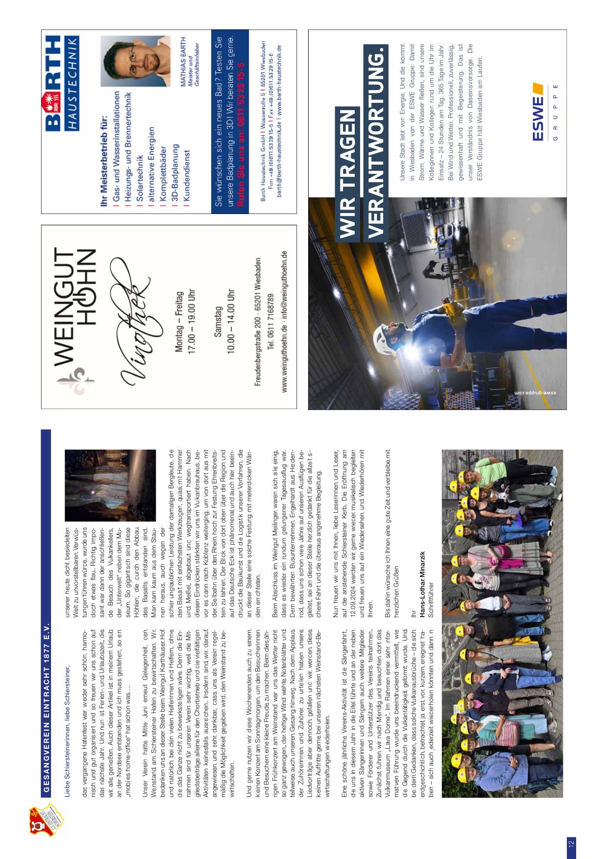 Nun freuen wir uns mit Ihnen, liebe Leserinnen und Leser, auf die anstehende Schiersteiner Kerb. Die Eröffnung am 12.09.2024 werden wir gerne wieder musikalisch begleiten und freuen uns auf ein Wiedersehen und Wiederhören mit Ihnen.