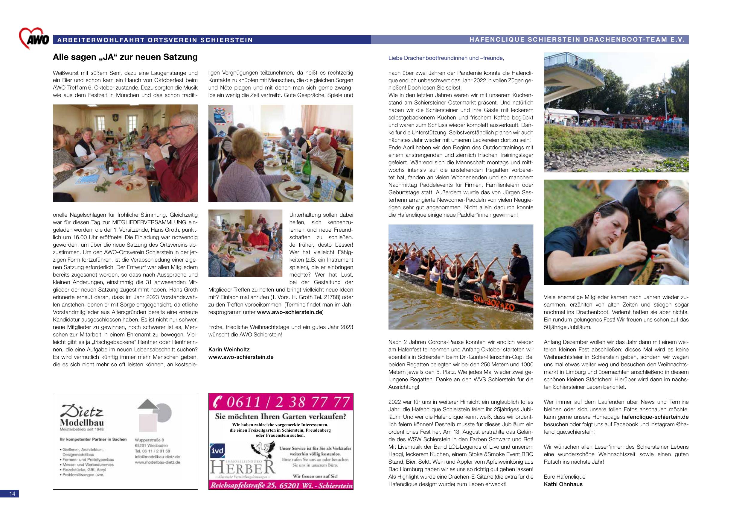 Anfang Dezember wollen wir das Jahr dann mit einem weiteren kleinen Fest abschließen: dieses Mal wird es keine Weihnachtsfeier in Schierstein geben, sondern wir wagen uns mal etwas weiter weg und besuchen den Weihnachtsmarkt in Limburg und übernachten anschließend in diesem schönen kleinen Städtchen! Hierüber wird dann im nächsten Schiersteiner Leben berichtet.