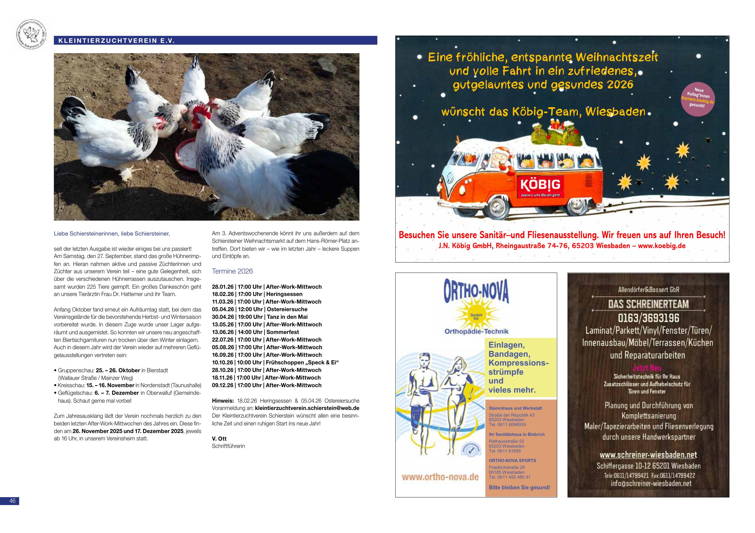Hinweis: 18.02.26 Heringsessen & 05.04.26 Ostereiersuche Voranmeldung an: kleintierzuchtverein.schierstein@web.de