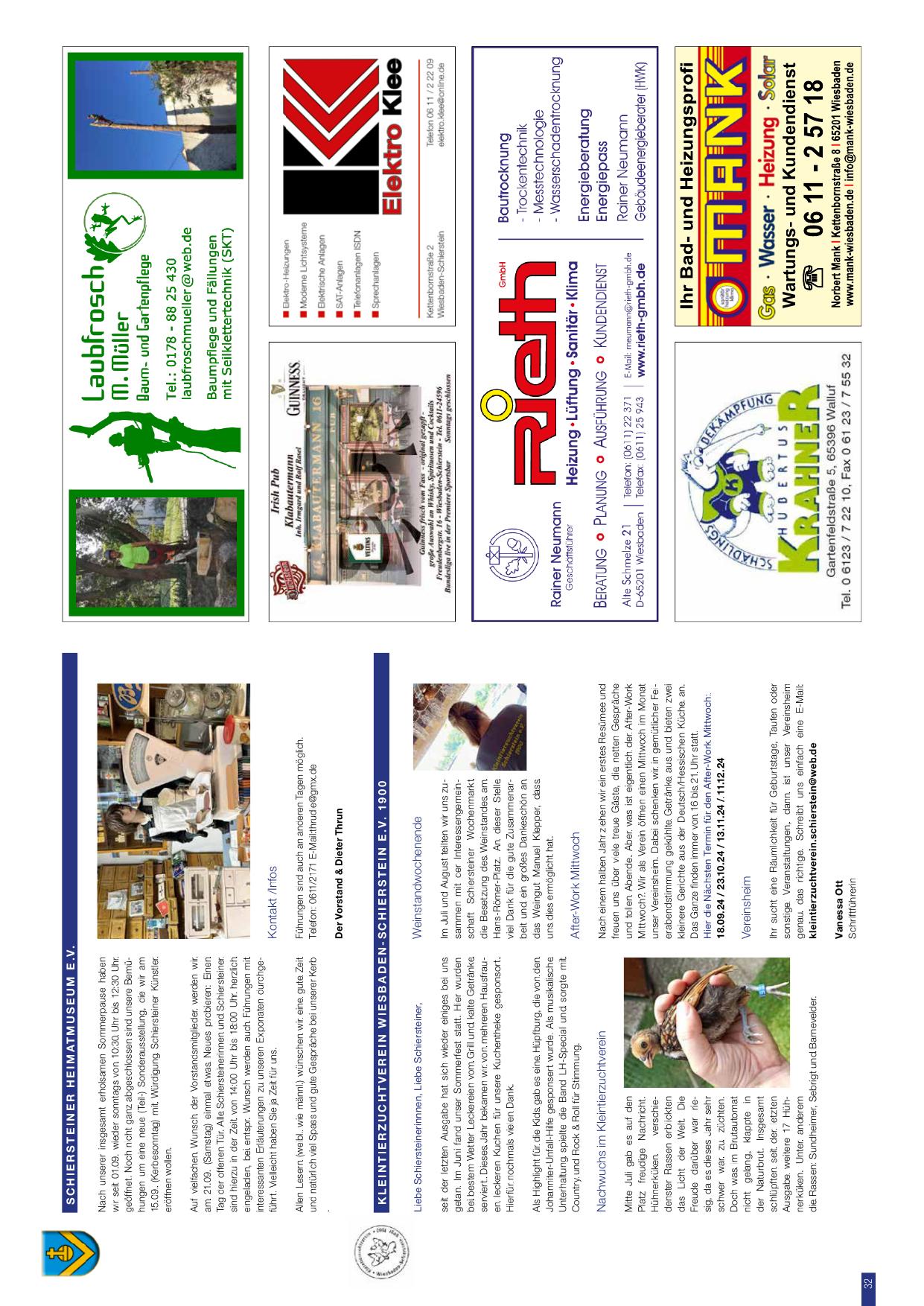 - 15.09. (Kerbesonntag) – Eröffnung der neuen (Teil-) Sonderausstellung mit Würdigung Schiersteiner Künstler – (Schiersteiner Heimatmuseum)