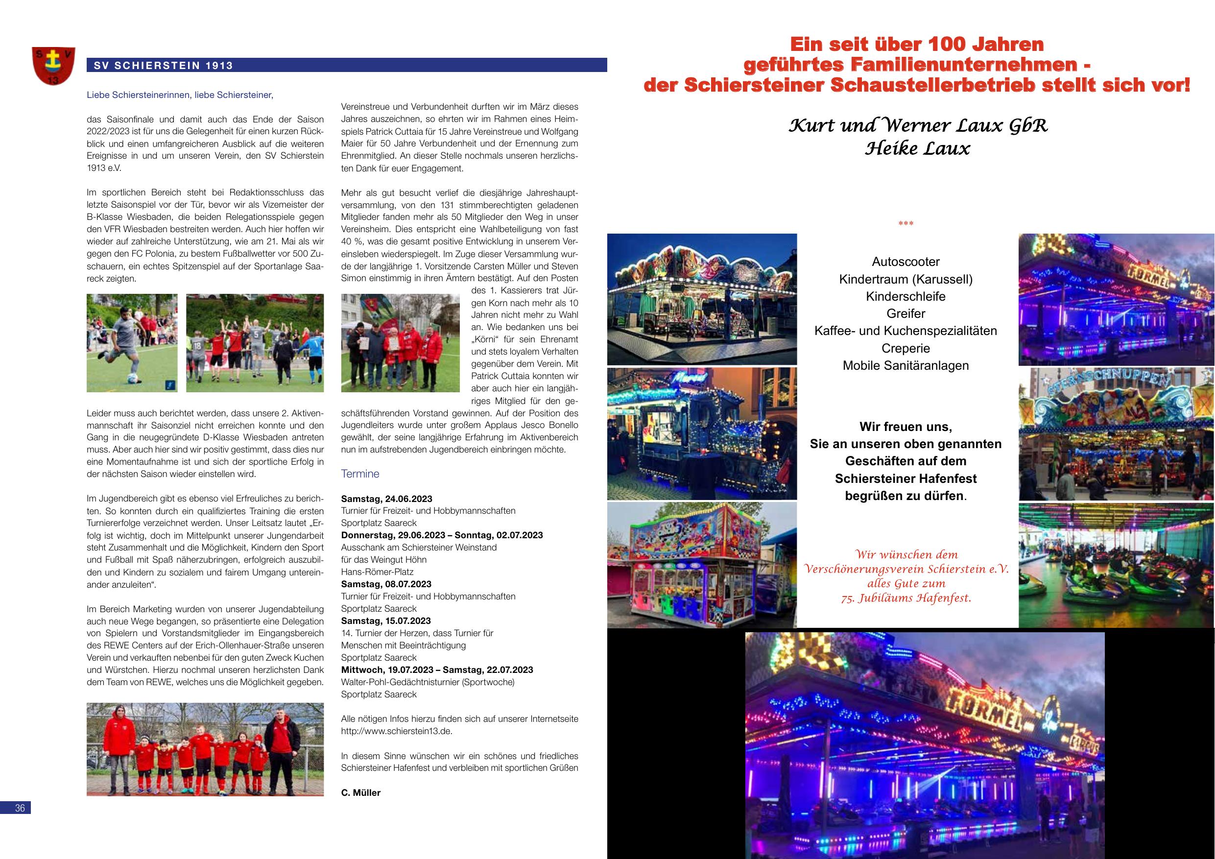 das Saisonfinale und damit auch das Ende der Saison 2022/2023 ist für uns die Gelegenheit für einen kurzen Rückblick und einen umfangreicheren Ausblick auf die weiteren Ereignisse in und um unseren Verein, den SV Schierstein 1913 e.V.
