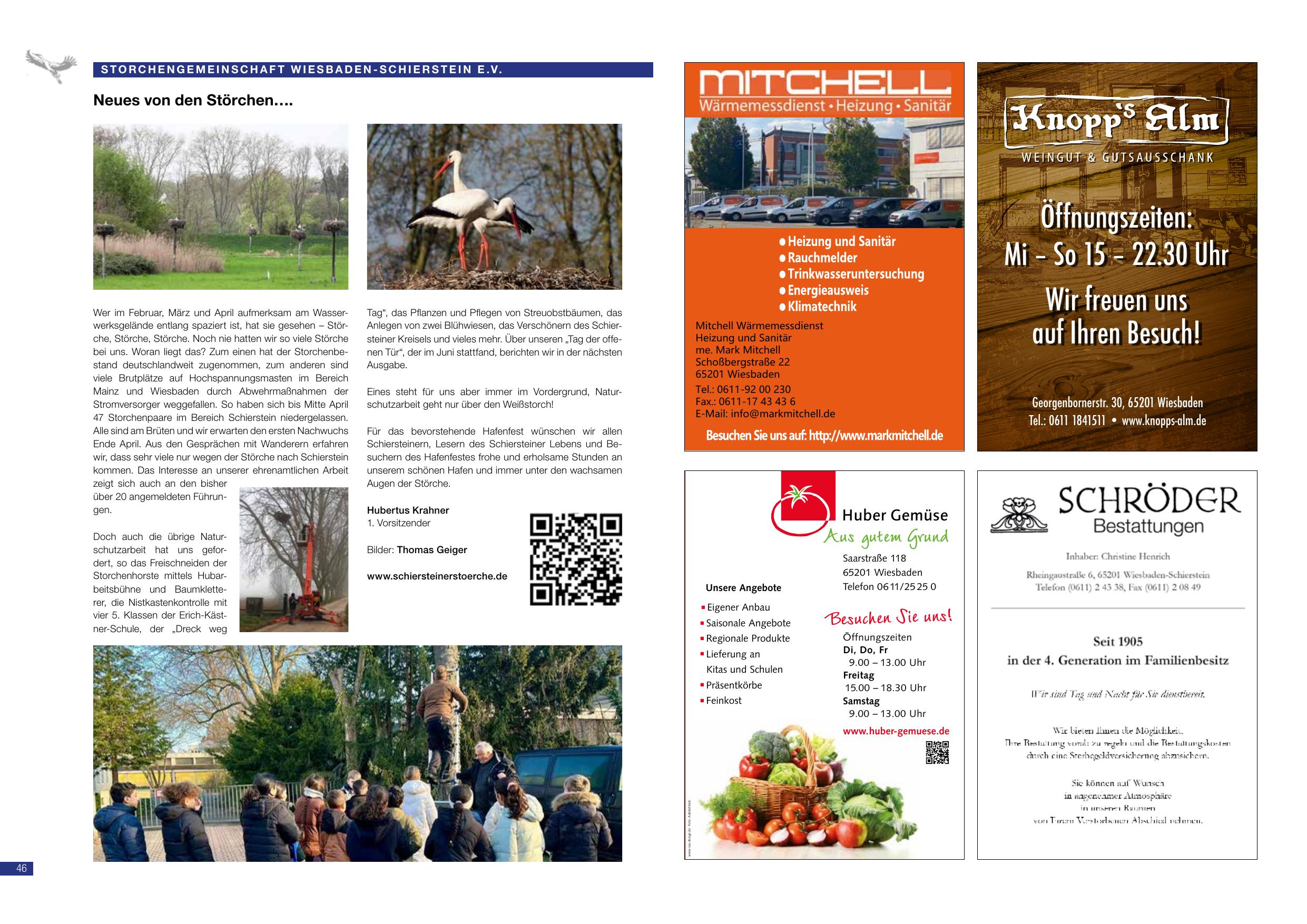 - bis Mitte April – 47 Storchenpaare im Bereich Schierstein niedergelassen – (Schierstein)