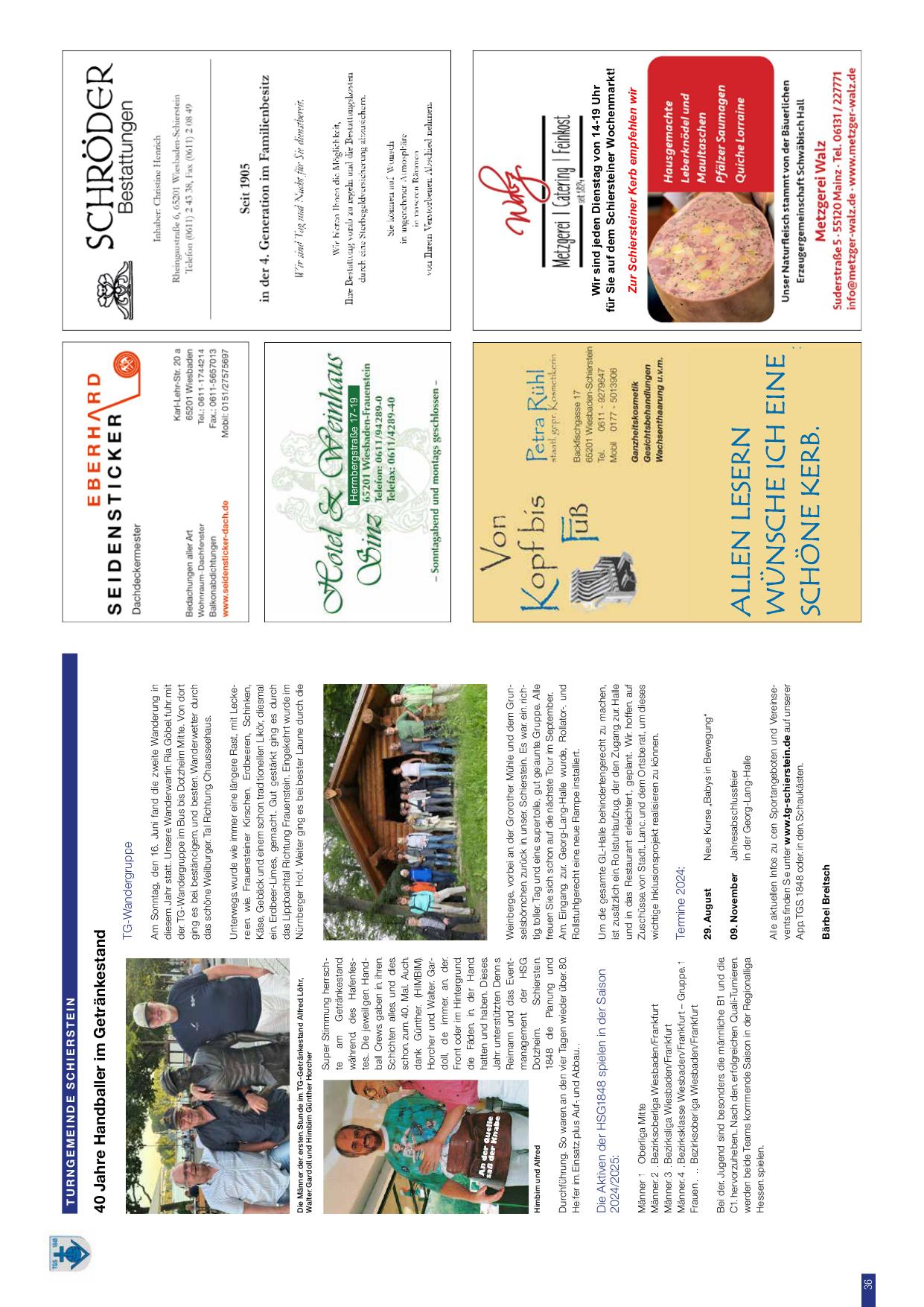 Alle aktuellen Infos zu den Sportangeboten und Vereinsevents finden Sie unter www.tg-schierstein.de auf unserer App TGS 1848 oder in den Schaukästen.