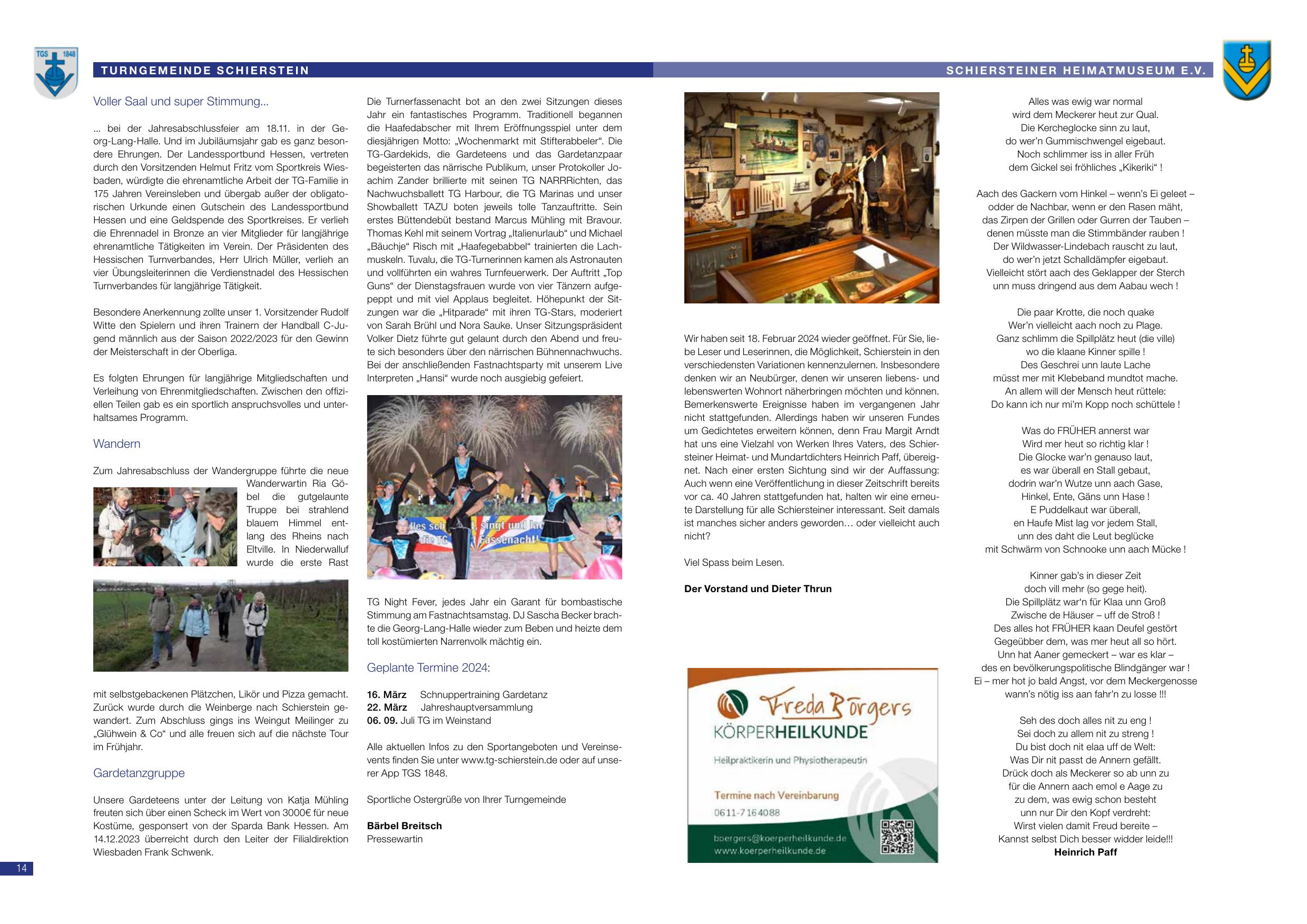 Alle aktuellen Infos zu den Sportangeboten und Vereinsevents finden Sie unter www.tg-schierstein.de oder auf unserer App TGS 1848.