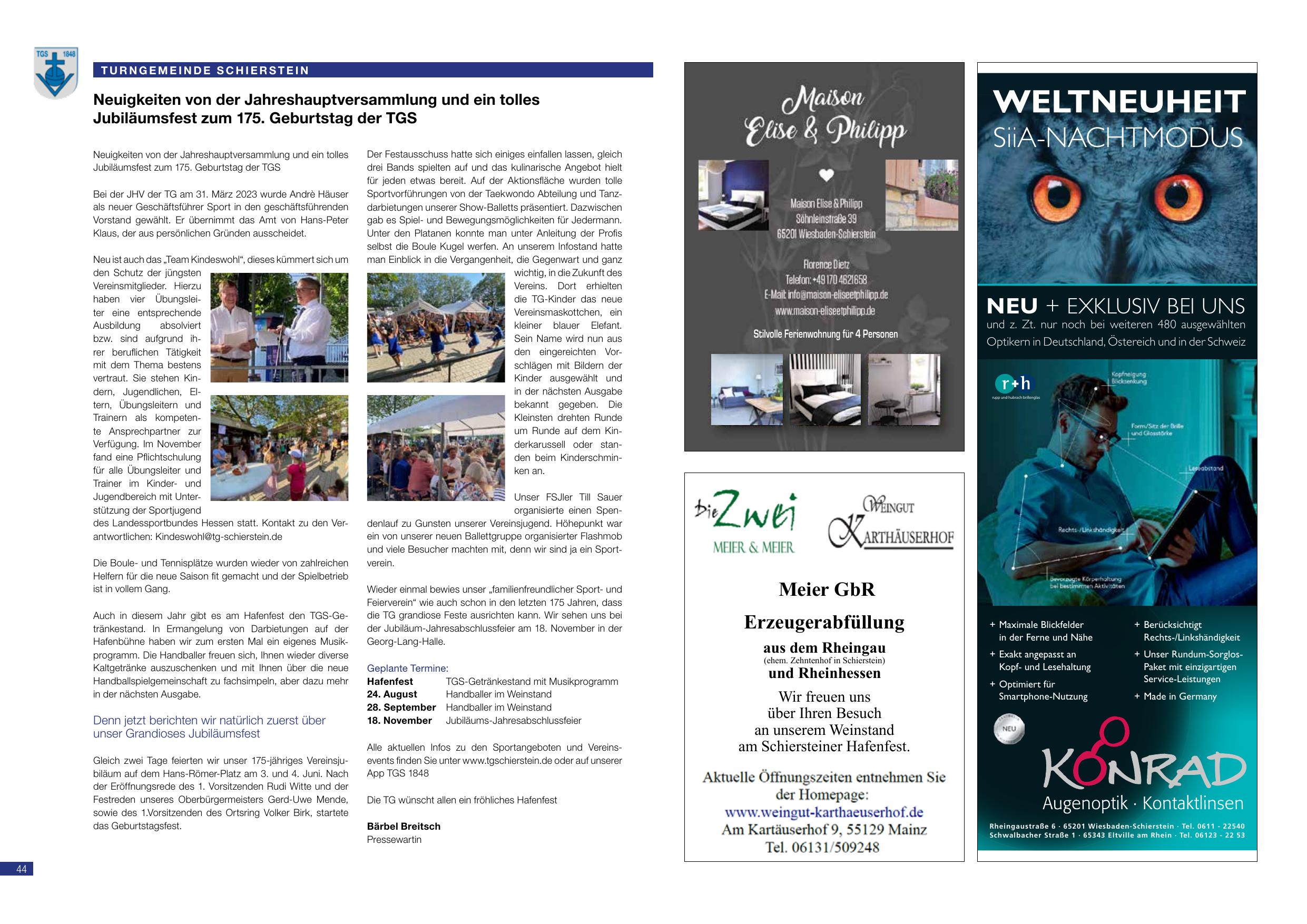 Alle aktuellen Infos zu den Sportangeboten und Vereinsevents finden Sie unter www.tgschierstein.de oder auf unserer App TGS 1848