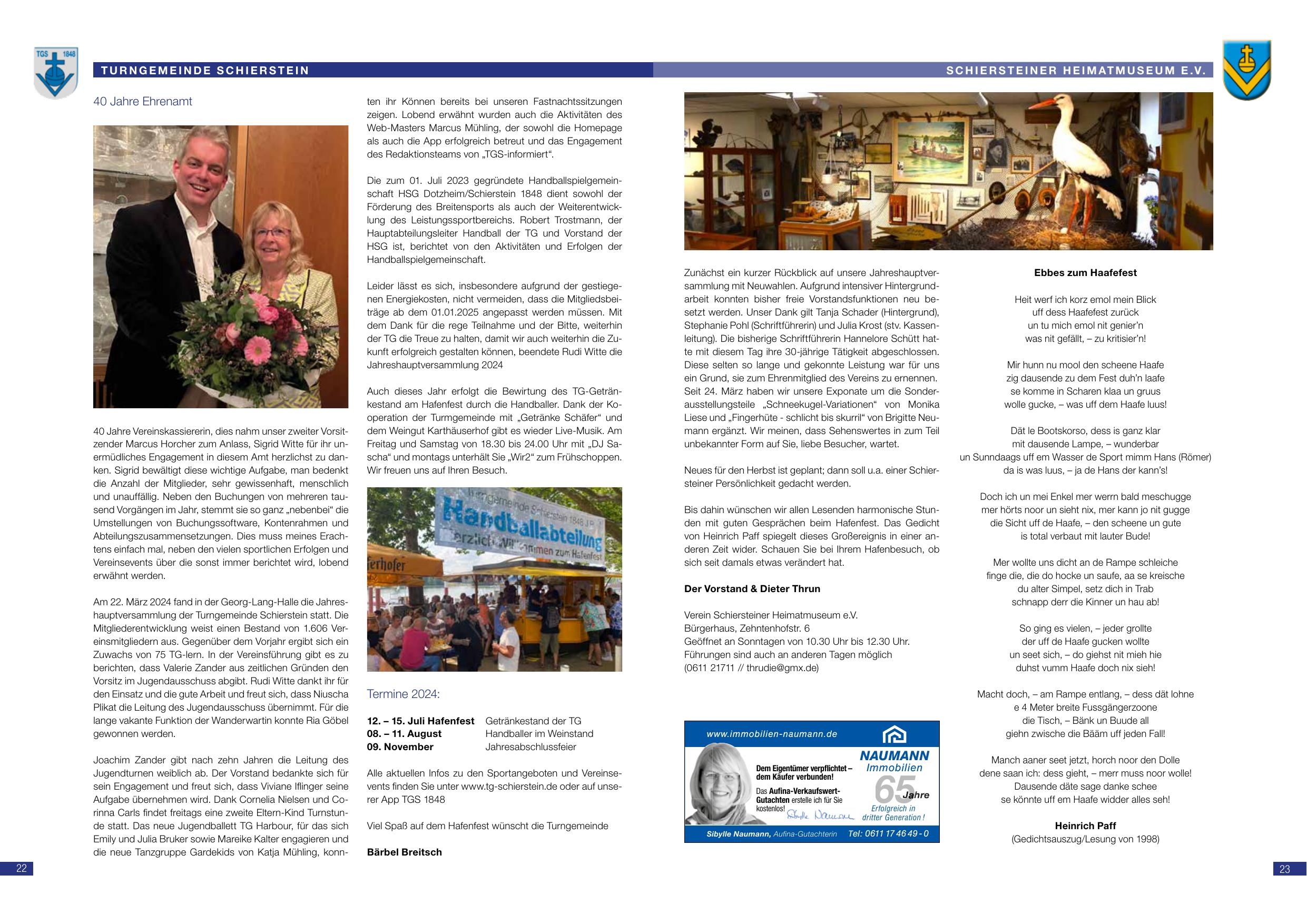 - 22. März 2024 – Jahreshauptversammlung der Turngemeinde Schierstein – (Georg-Lang-Halle)