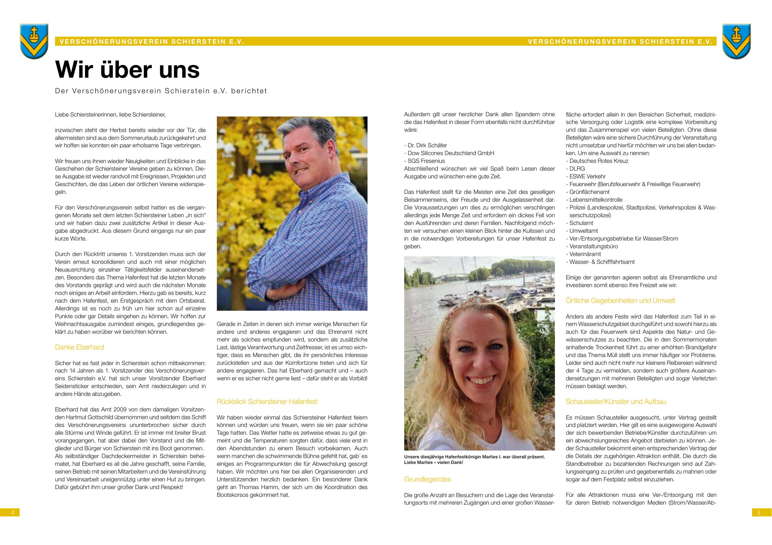 Wir freuen uns ihnen wieder Neuigkeiten und Einblicke in das Geschehen der Schiersteiner Vereine geben zu können. Diese Ausgabe ist wieder randvoll mit Ereignissen, Projekten und Geschichten, die das Leben der örtlichen Vereine widerspiegeln.