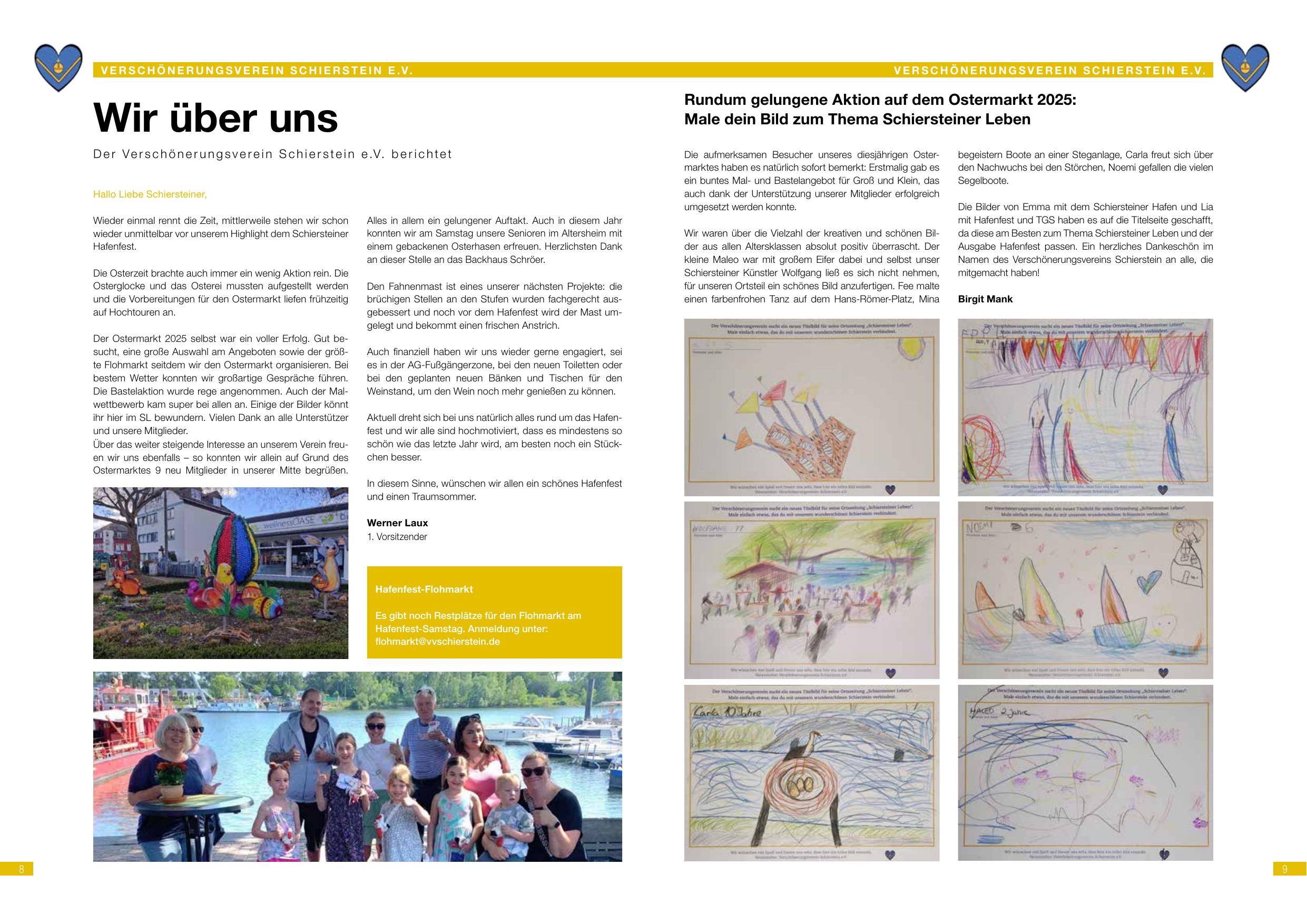 Die Bilder von Emma mit dem Schiersteiner Hafen und Lia mit Hafenfest und TGS haben es auf die Titelseite geschafft, da diese am Besten zum Thema Schiersteiner Leben und der Ausgabe Hafenfest passen. Ein herzliches Dankeschön im Namen des Verschönerungsvereins Schierstein an alle, die mitgemacht haben!