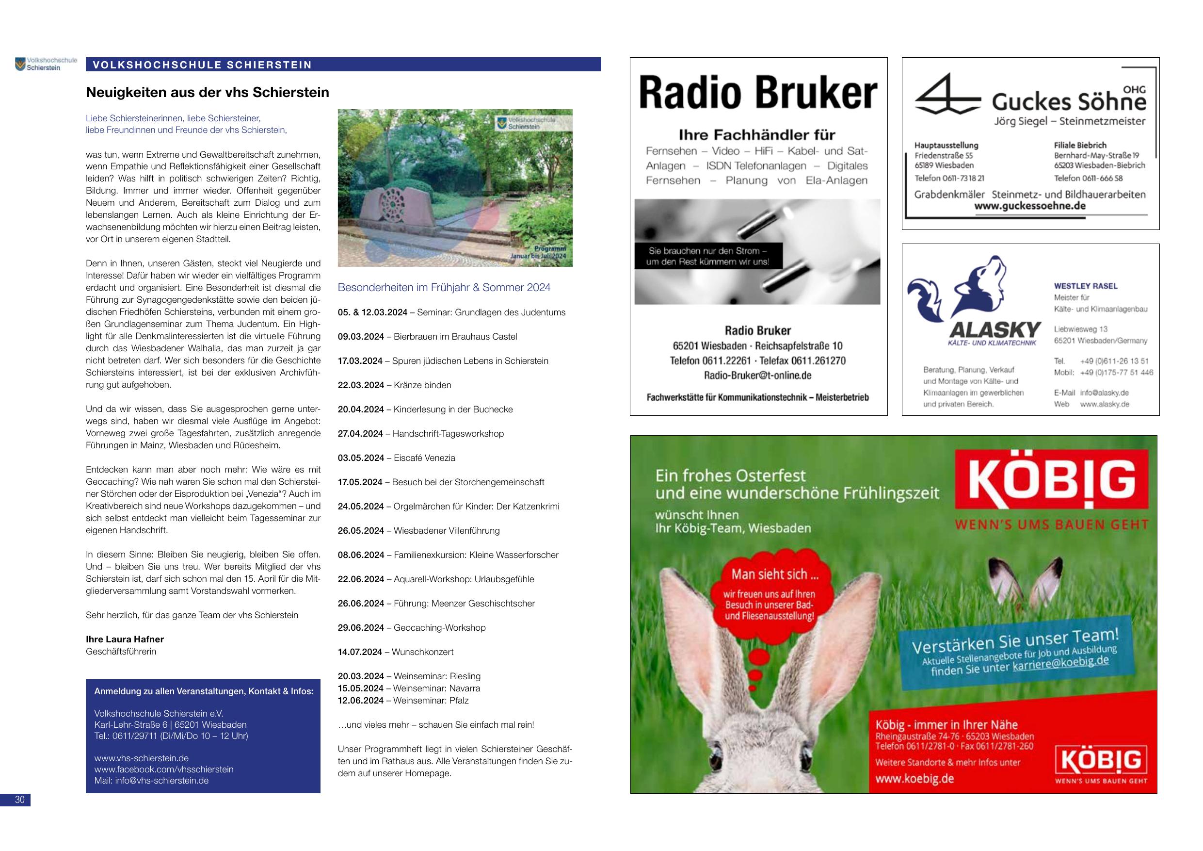 Unser Programmheft liegt in vielen Schiersteiner Geschäften und im Rathaus aus. Alle Veranstaltungen finden Sie zudem auf unserer Homepage.